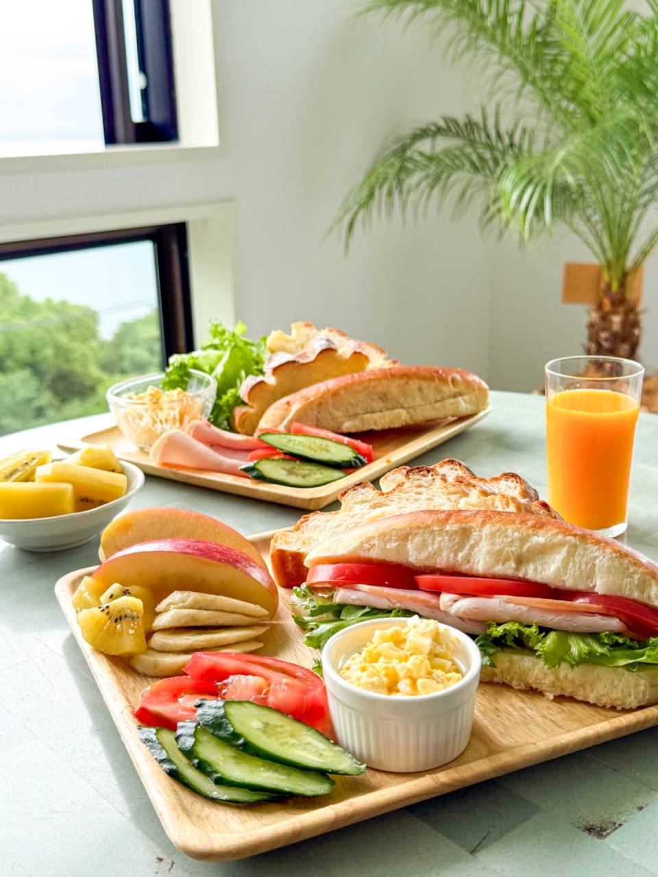 材料、製法をこだわり抜いた焼き立てパン。地元のお野菜、日の出卵。お好みの具材をチョイスして、挟んでお召し上がりください。
