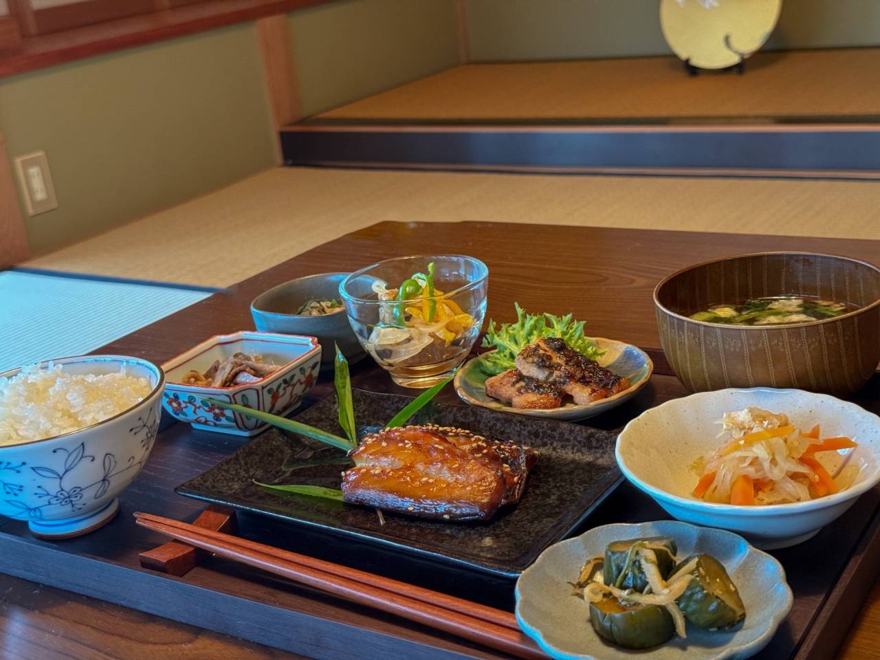 海の見える特別室、広縁付二間続きの落ち着いた和室でご提供。地元の食材を用いたヘルシーな和定食です。